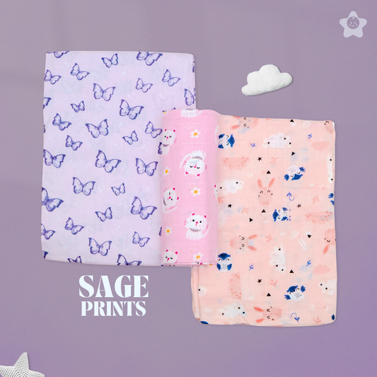 Sage Prints Muslin Swaddle Blanket - Ultra soft 100% Muslin Cotton Swaddle Wrapper (pack of 3)