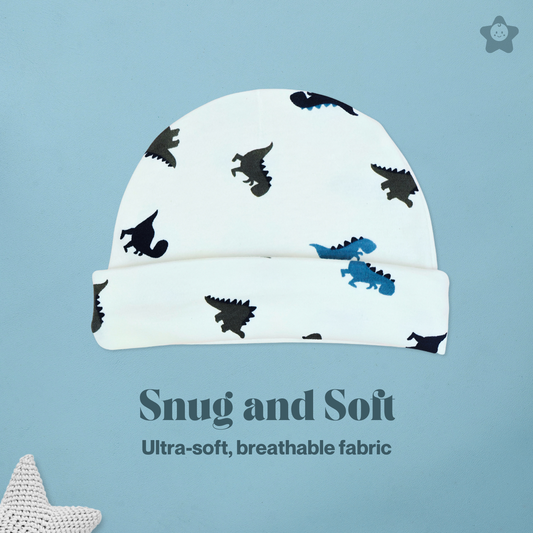 Cap Mittens Booties Set - 100% Ultra Soft Cotton Combo Dino prints