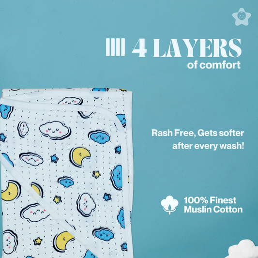 Magical Night Hodded Wrapper Bath Towel - 100% Soft Muslin Cotton (Pack of 1)