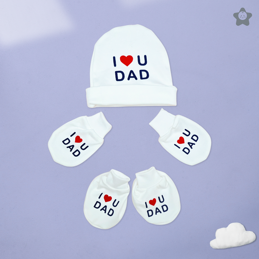 I Love Dad Prints Cap Mittens Booties Set - 100% Ultra Soft Cotton Combo