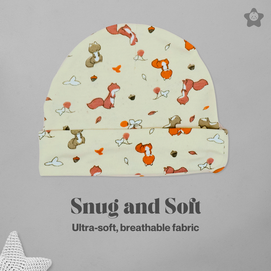 Cap Mittens Booties Set - 100% Ultra Soft Cotton Combo Squirrels prints