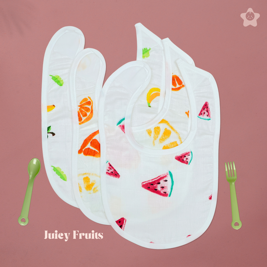 Juicy Fruits Print Baby Apron Bibs - 100% Soft Muslin Cotton (Pack of 3)