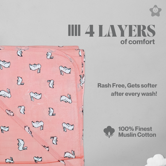 Hoppy Bunny Hooded Wrapper Bath Towel - 100% Soft Muslin Cotton (Pack of 1)