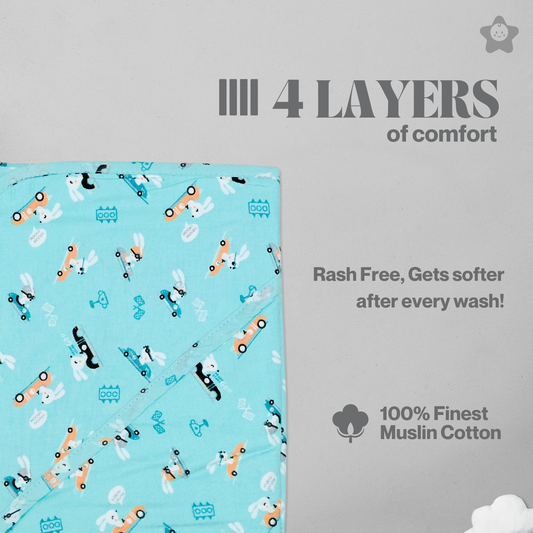 Racing Rabbits Hooded Wrapper Bath Towel - 100% Soft Muslin Cotton (Pack of 1)