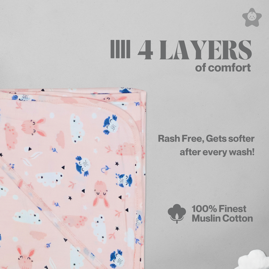Bunny Buds Hooded Wrapper Bath Towel - 100% Soft Muslin Cotton (Pack of 1)
