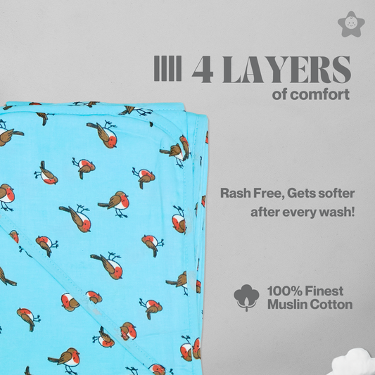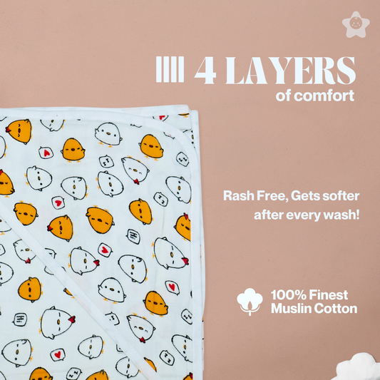 Chirpy Joy Hooded Wrapper Bath Towel - 100% Soft Muslin Cotton (Pack of 1)