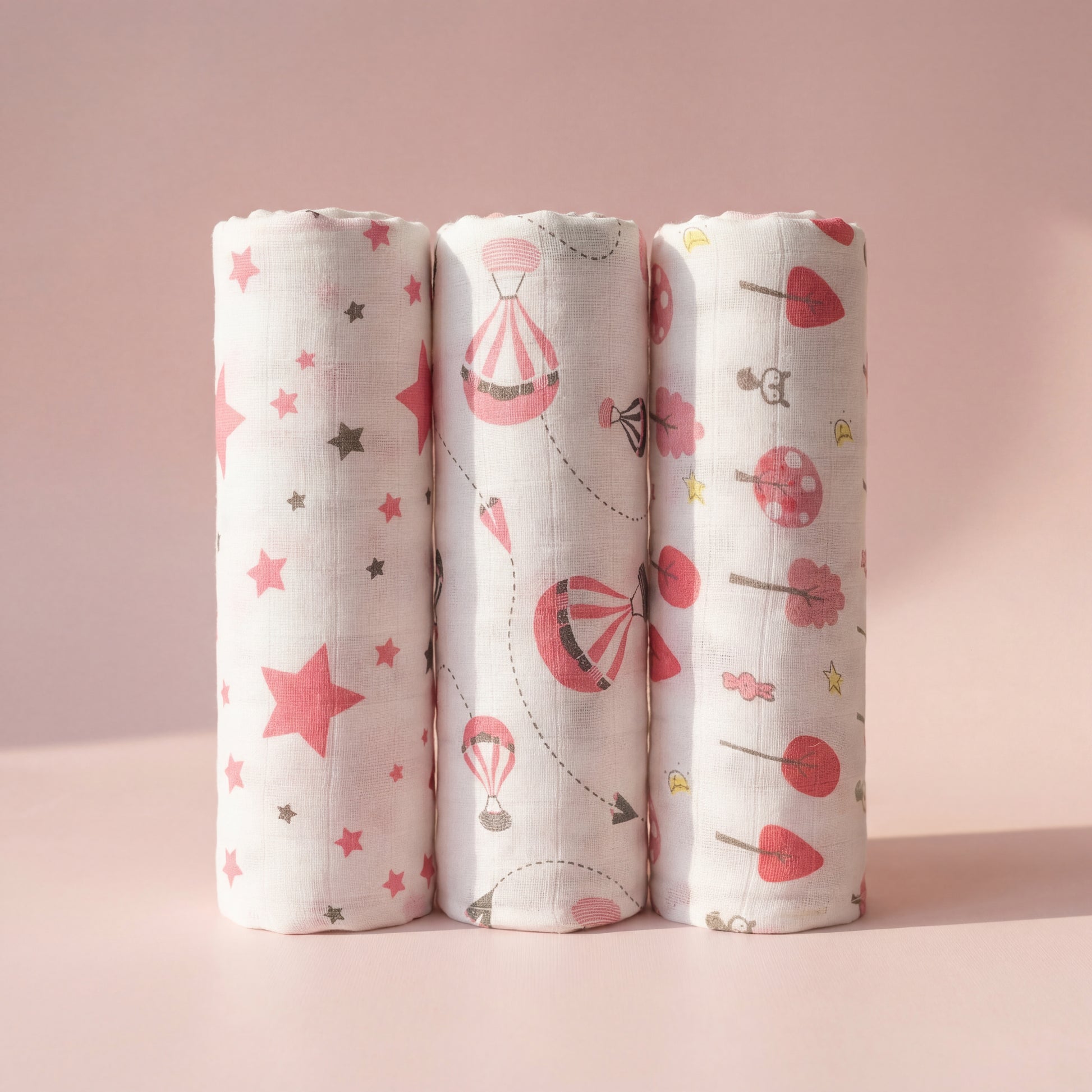 Fuchisa Muslin Swaddle Blanket - Ultra soft 100% Muslin Cotton Swaddle Wrapper (pack of 3)